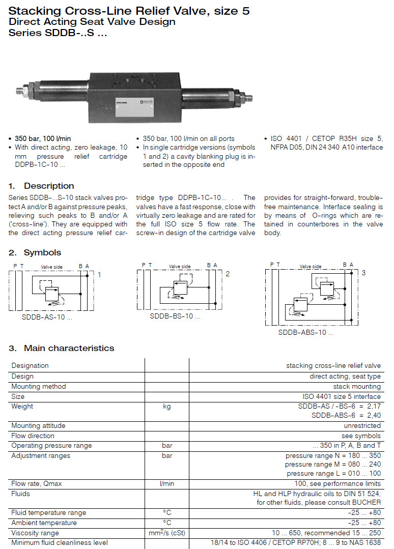 詳細(xì)信息 SDDB-AS-10-SN,SDDB-BS-10-SM,SDDB-ABS-10-SL,SDDB-AS-10-SNV,SDDB-AS-10-SMV,Bucher跨線卸壓閥
