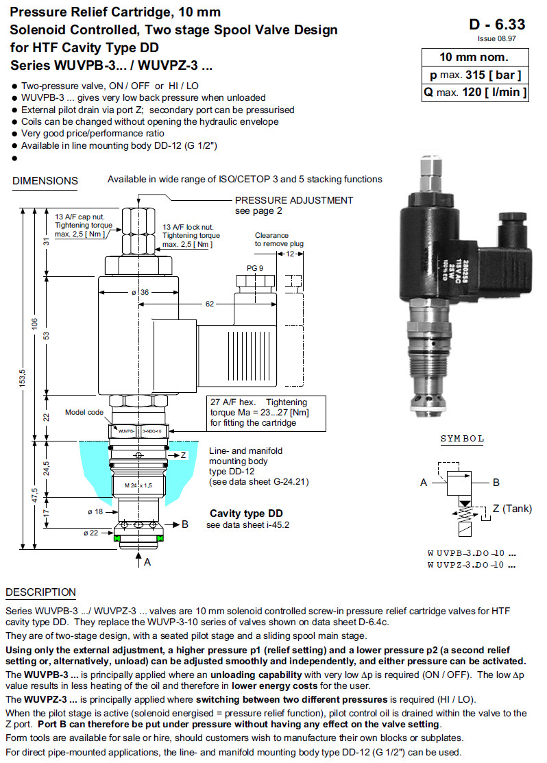 詳細信息 WUVPB-3MDO-10-1,WUVPB-3LDO-10-1,WUVPB-3NDO-10-1,Bucher電磁控制壓力安全閥