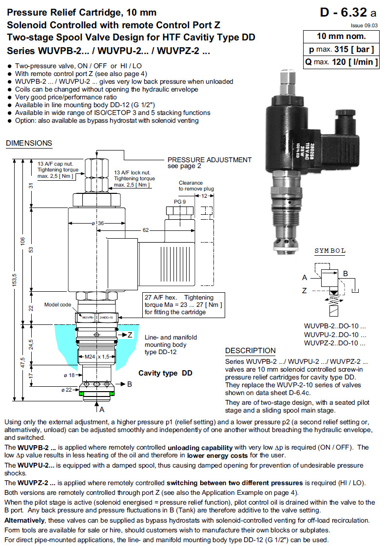 詳細(xì)信息 WUVPB-2MDO-10-1,WUVPB-2LDO-10-1,WUVPB-2NDO-10-1,Bucher電磁控制壓力安全閥