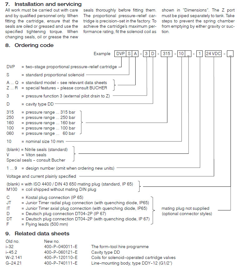 詳細(xì)信息 DVPSA-3D-250-10-2,DVPSA-3D-160-10-2,DVPSA-3D-060-10-2,DVPSA-3D-315-10-2,Bucher比例溢流閥
