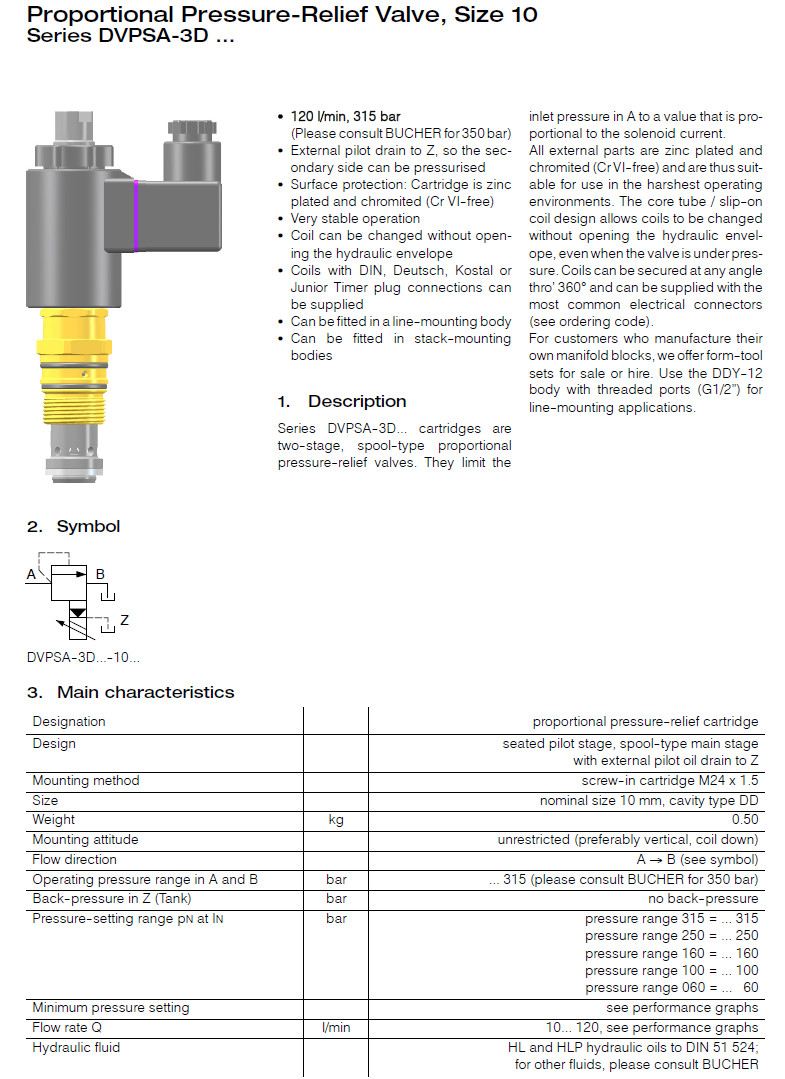 DVPSA-3D-250-10-2,DVPSA-3D-160-10-2,DVPSA-3D-060-10-2,DVPSA-3D-315-10-2,Bucher比例溢流閥