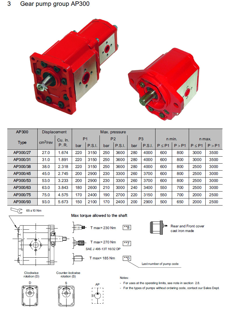 AP300/27,AP300/31,AP300/38,AP300/45,AP300/53,AP300/63,AP300/75,Bucher外嚙合齒輪泵