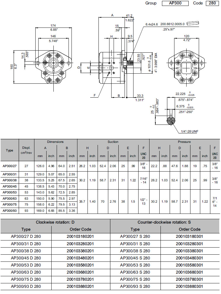 AP300/45-D-280,AP300/53-D-280,AP300/63-D-280,AP300/75-D-280,AP300/93-D-280,