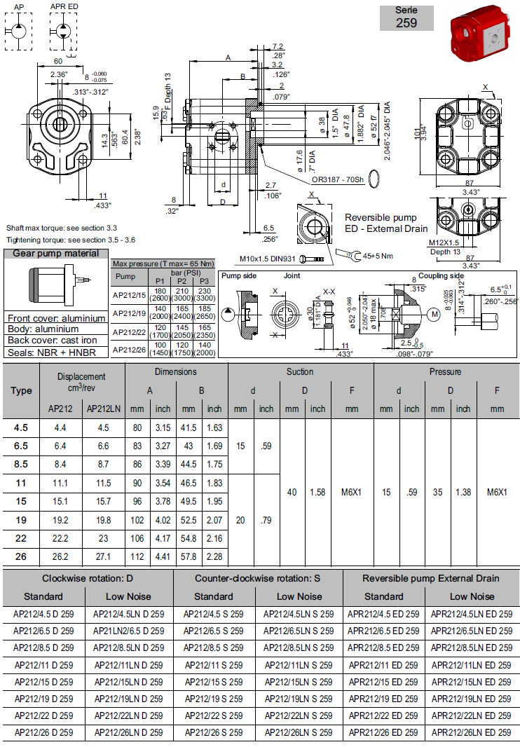 AP212/4.5,AP212/6.5,AP212/8.5,AP212/11,AP212/15,AP212/22,Bucher外嚙合齒輪泵