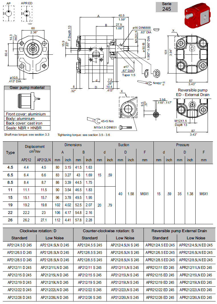 AP212/4.5-D-225,AP212/6.5-D-225,AP212/8.5-D-225,AP212/11-D-225,