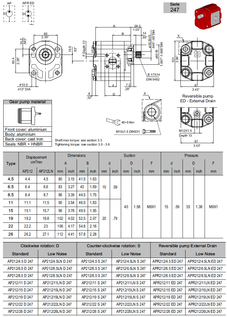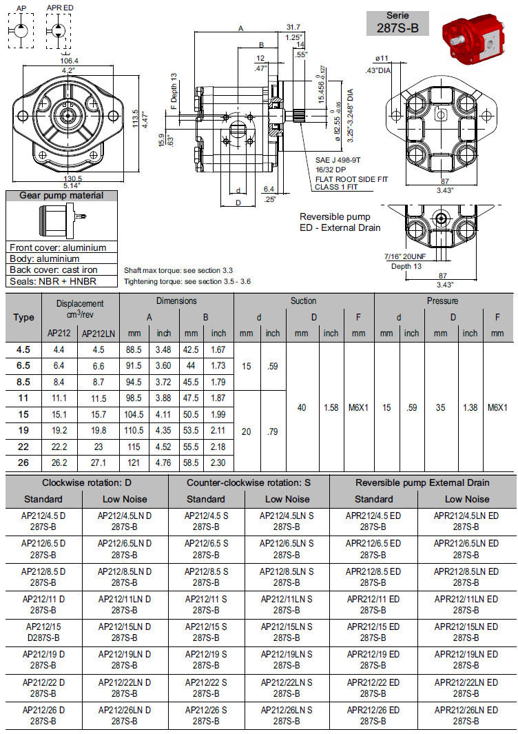 AP212/4.5-D-245,AP212/6.5-D-245,AP212/8.5-D-245,AP212/11-D-245外粘合齒輪泵