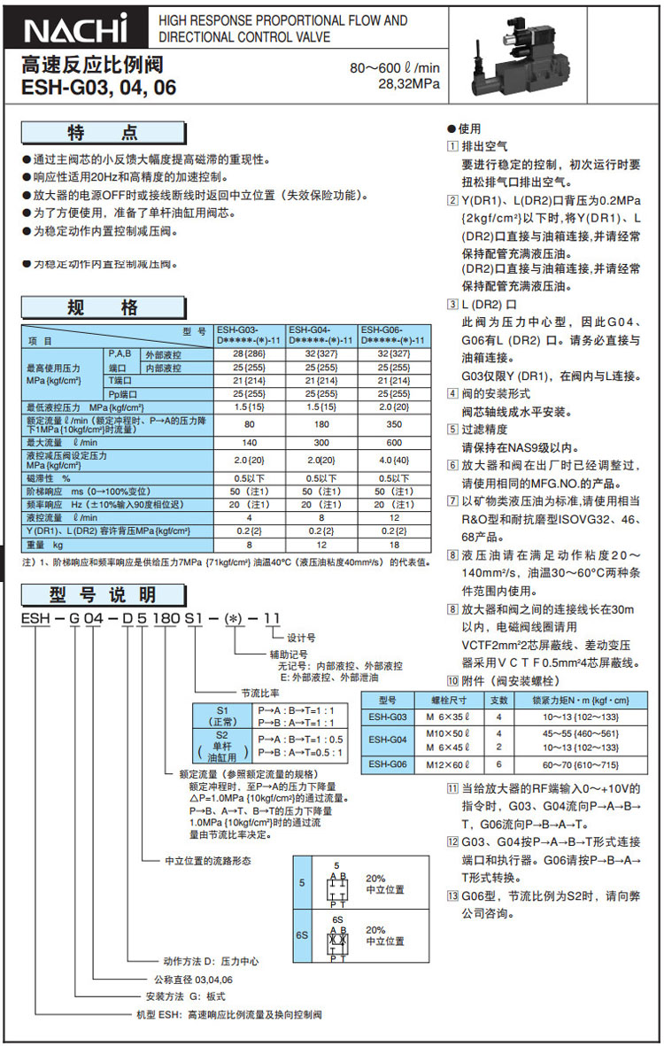 ESH-G03,ESH-G04,ESH-G06,ESH-G03-D580S1-E-11,ESH-G04-D5180S1-11,ESH-G06-D5350S1-11,NACHI高速反應(yīng)比例閥