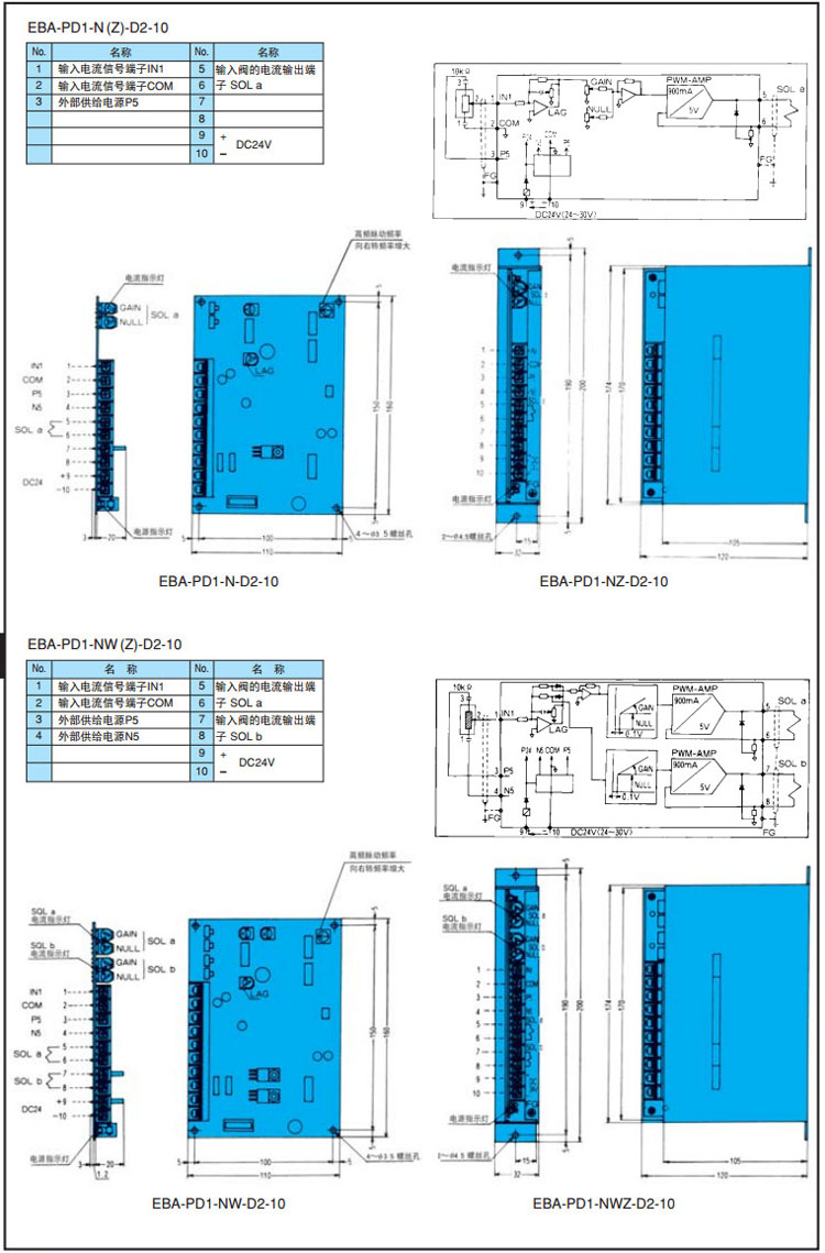 詳細信息 EBA-PD1-N-C1-10,EBA-PD1-NW-C1-10,EBA-PD1-NWZ-D2-10,EBA-PD1-Z-D2-10,NACHI小型比例放大器