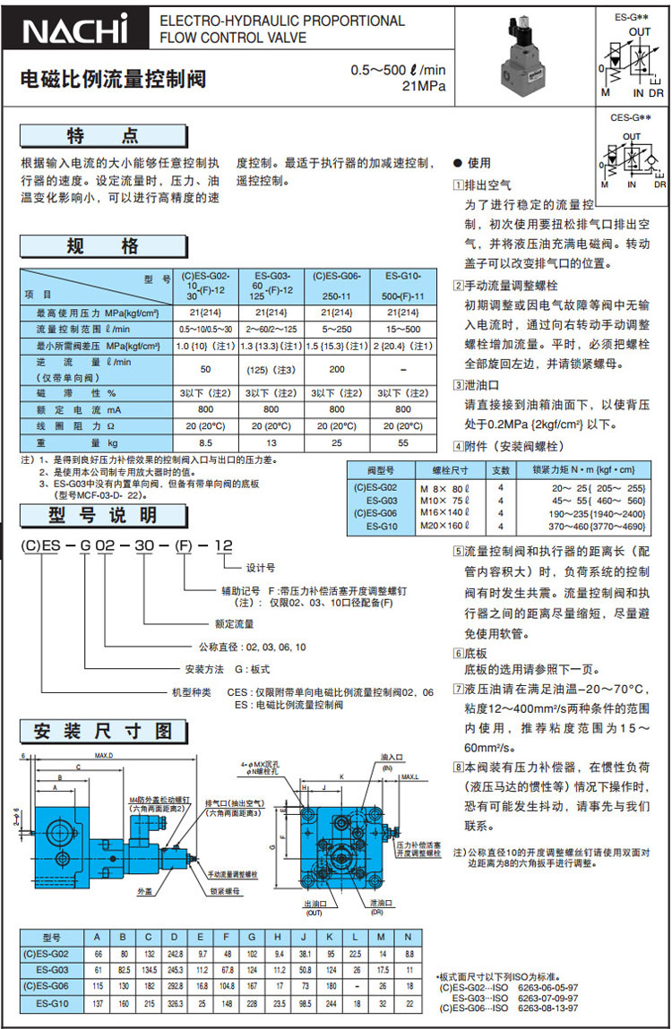 CES-G02-10-F-12,ES-G03-125-F-12,ES-G10-500-F-11,CES-G06-250-11,NACHI電磁比例流量控制閥