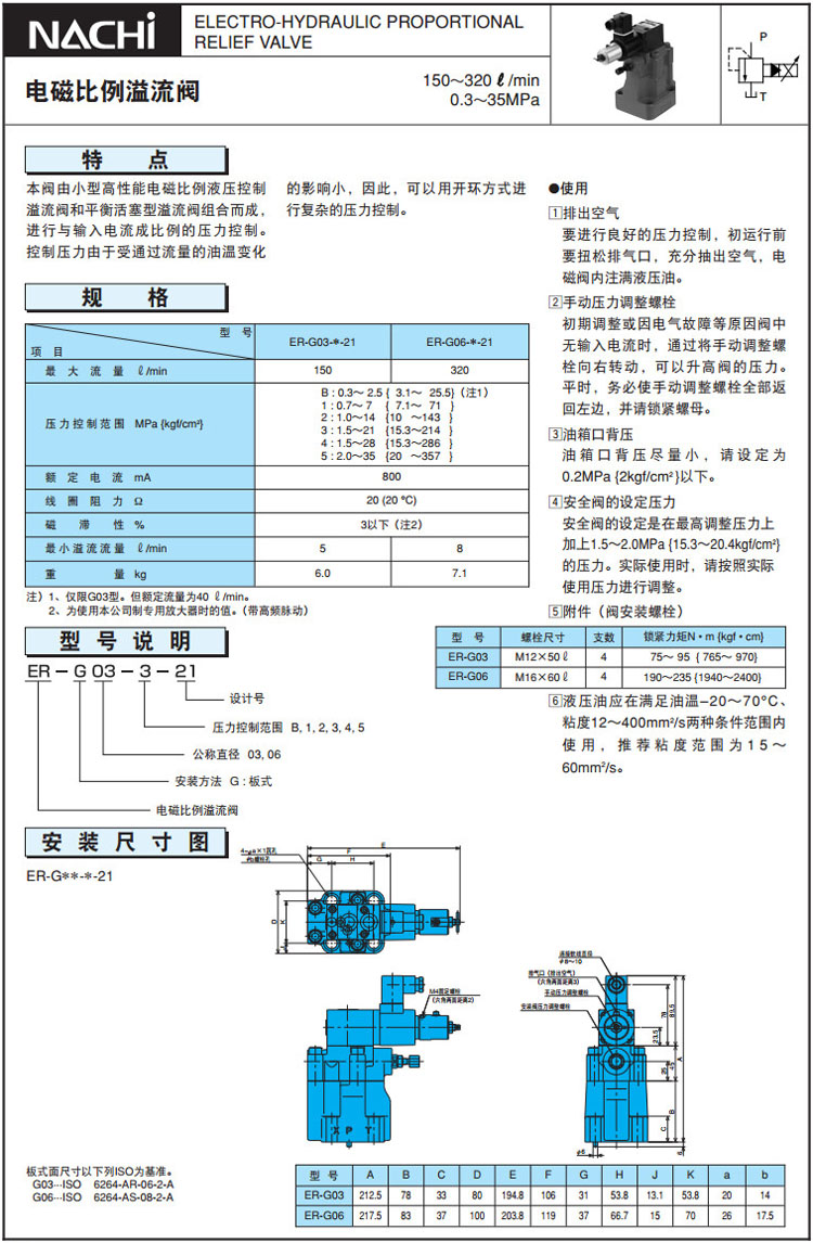 ER-G03-B-21,ER-G06-5-21,ER-G03-3-21,ER-G06-1-21,ER-G06-3-21,NACHI電磁比例溢流閥
