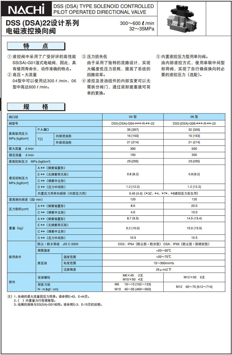 DSS-G04,DSS-G06,DSS-G04-A3Z-R-E230-22,DSS-G06-C7X-R-C115-22,DSS-G04-A3X-R-C230-22,NACHI電磁液控換向閥