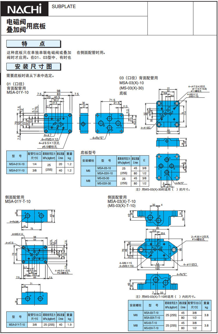 詳細信息 MSA-01,MSA-03,MS-03,MDS-04,MDS-06,MSA-01X-10,MSA-01Y-T-10,NACHI閥用底板