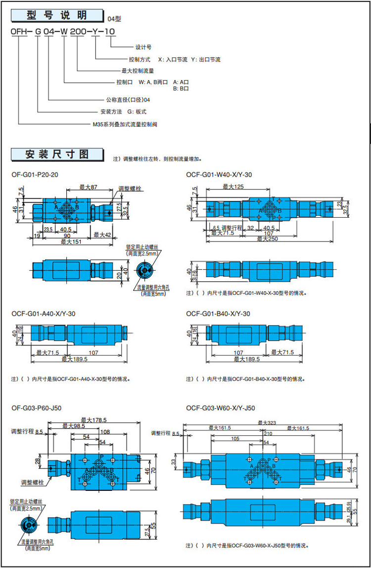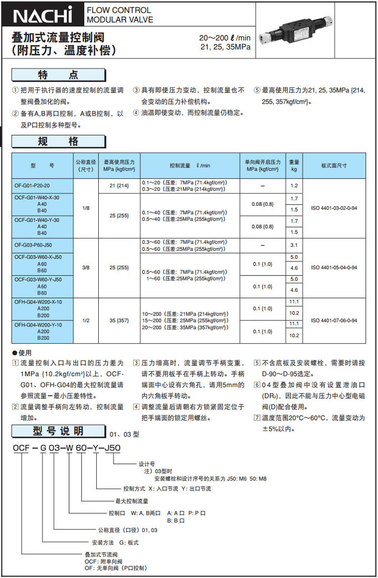 OF-G01,OF-G03,OCF-G01,OCF-G03,OFH-G04,OF-G01-P20-20,OCF-G01-B40-Y-30,NACHI疊加式流量控制閥