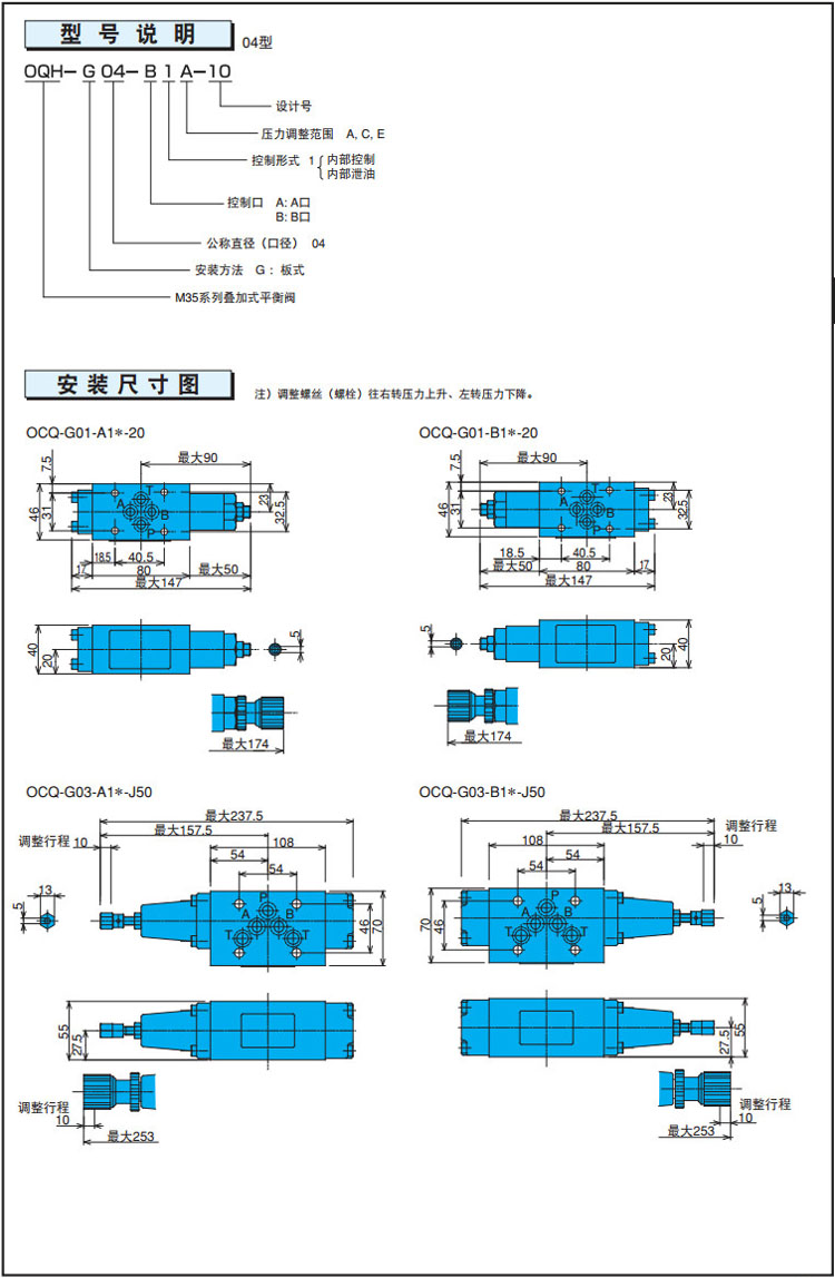 OCQ-G01,OCQ-G03,OCQ-G04,OCQ-G01-A11-20,OCQ-G04-A1E-10,NACHI疊加式平衡閥