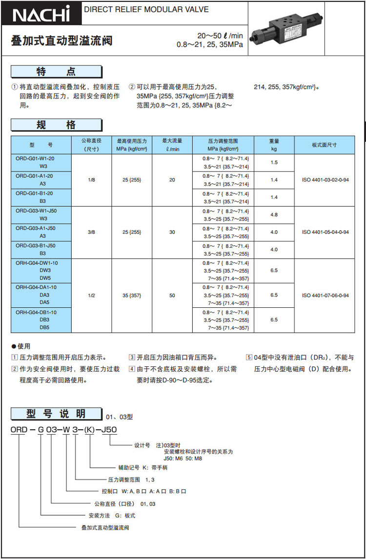 詳細(xì)信息 ORD-G01,ORD-G03,ORH-G04,ORD-G01-W1-20,ORD-G03-W1-J50,ORH-G04-DW1-10,NACHI疊加式直動(dòng)型溢流閥
