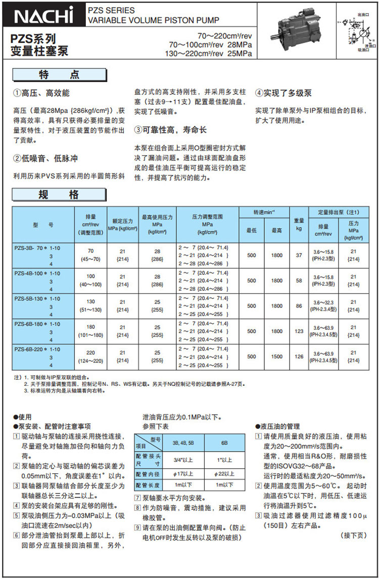 PZS-6B-180N3-10,NACHI PZS-6B-180N4-10,PZS-6B-220N1-10,PZS-6B-220N3-10,PZS-6B-220N4-10,