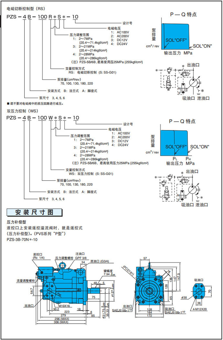 PZS-3B,PZS-4B,PZB-5B,PZS-6B,PZS-6B-220W4S4-10,PZS-5B-130N1Q4-10,NACHI變量柱塞泵