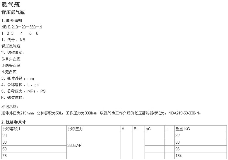 詳細信息 NBS219-20-330-N,NBD219-30-330-N,NBS219-50-330-N,NBS219-75-330-N,氮氣瓶