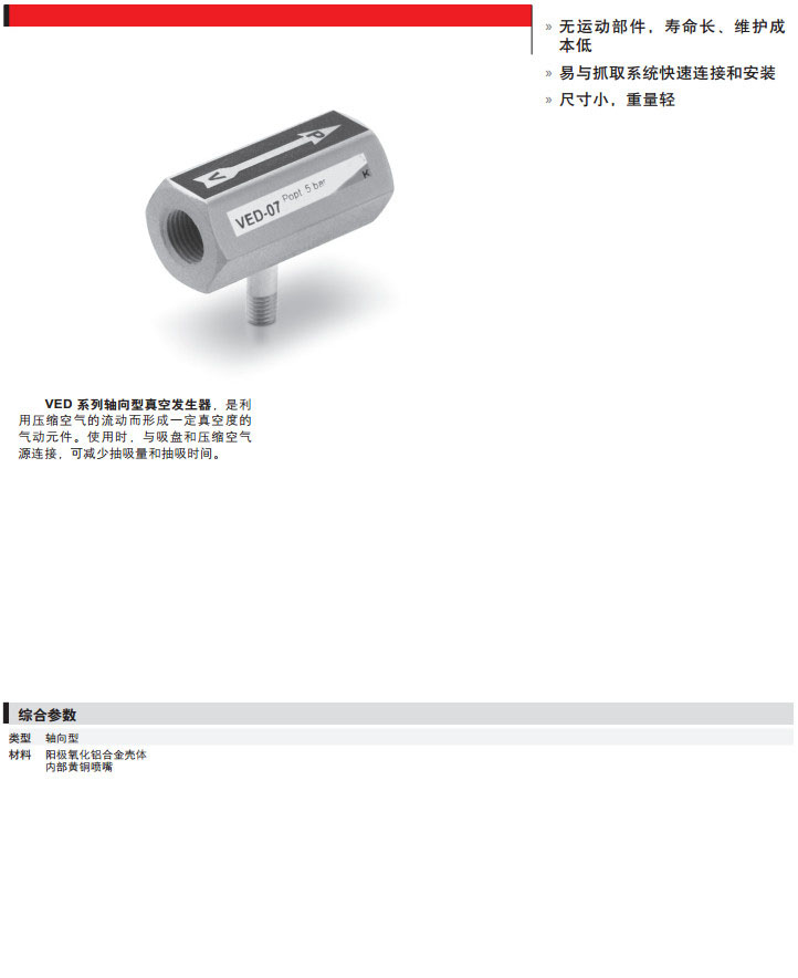 詳細(xì)信息 VED-07,VED-09,camozzi軸向型真空發(fā)生器