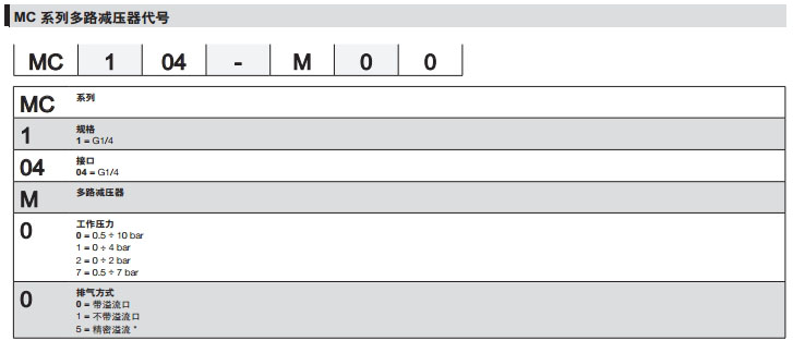 MC104-M00,MC104-M01,MC104-M11,MC104-M25,MC104-M70,camozzi多路減壓器