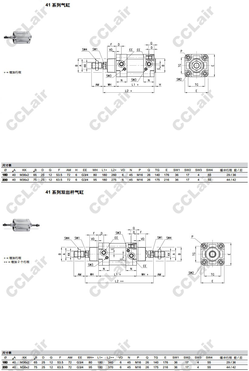 41M2P160A050,41M3P160A0100,41M2P200A0200,41M3P200F0400,41M4P160F0500,camozzi氣缸