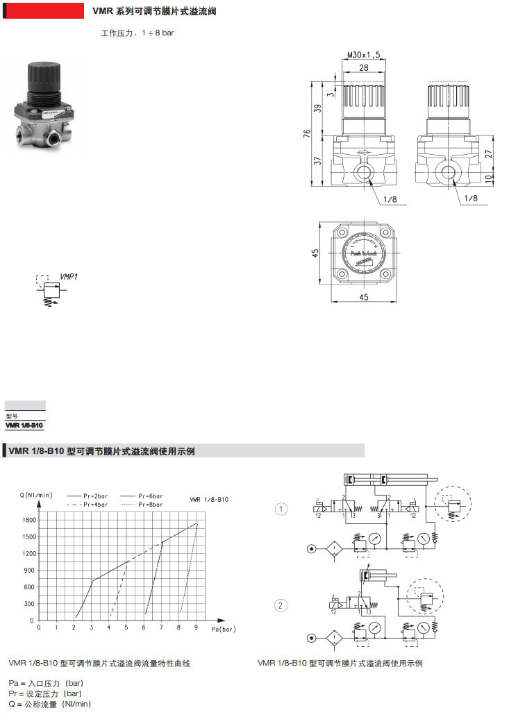 VMR1/8-B10,camozzi可調節(jié)膜片式溢流閥