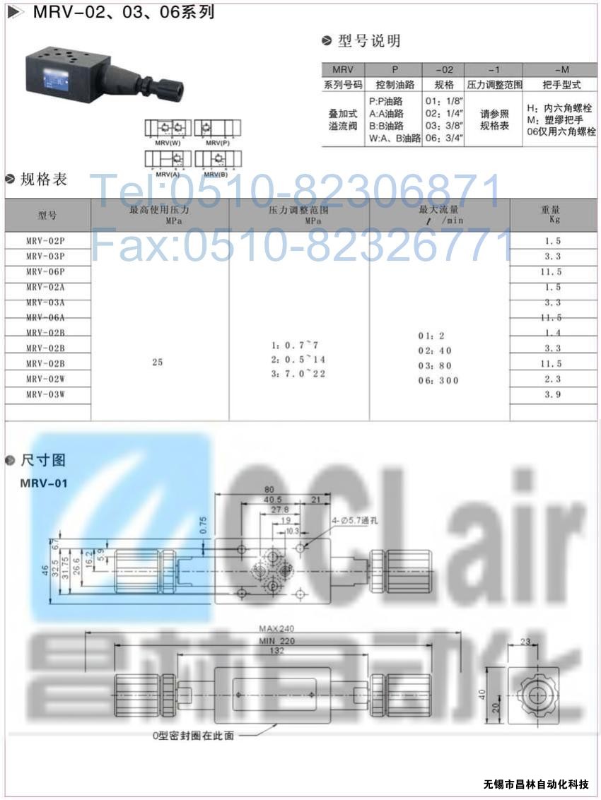 MRV-02,MRV-03,MRV-06,MRV-02P,疊加式溢流閥,生產廠家,價格