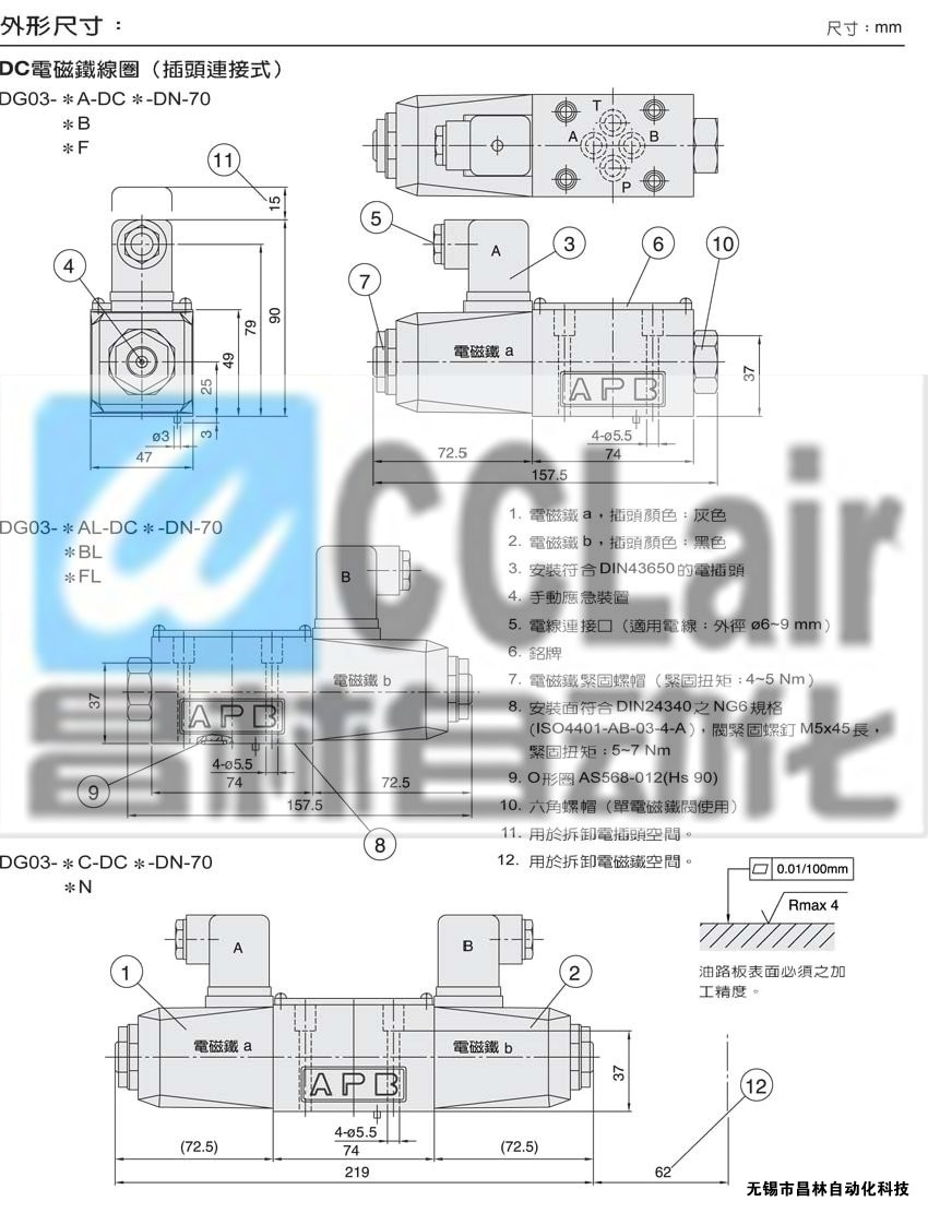 DG03-5AL,DG03-6AL,DG03-7AL,DG03-8AL,DG03-11AL,DG03-22AL,DG03-31AL,濕式電磁鐵操作換向閥