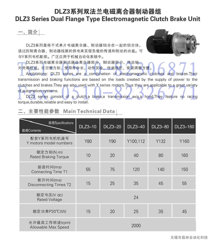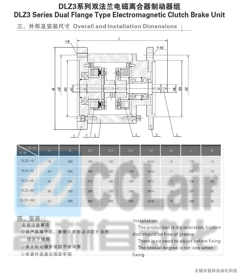 DLZ3-5,DLZ3-10,DLZ3-20,DLZ3-40,DLZ3-80,DLZ3-160,DLZ3-320,雙法蘭電磁離合器制動器組
