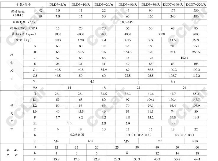 DLD7-5/A,DLD7-10/A,DLD7-20/A,DLD7-40/A,DLD7-80/A,DLD7-160/A,DLD7-320/A,電磁離合器 |