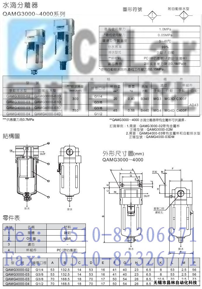 QAMG3000-02,QAMG3000-02D,QAMG3000-03,QAMG3000-03D,水滴分離器