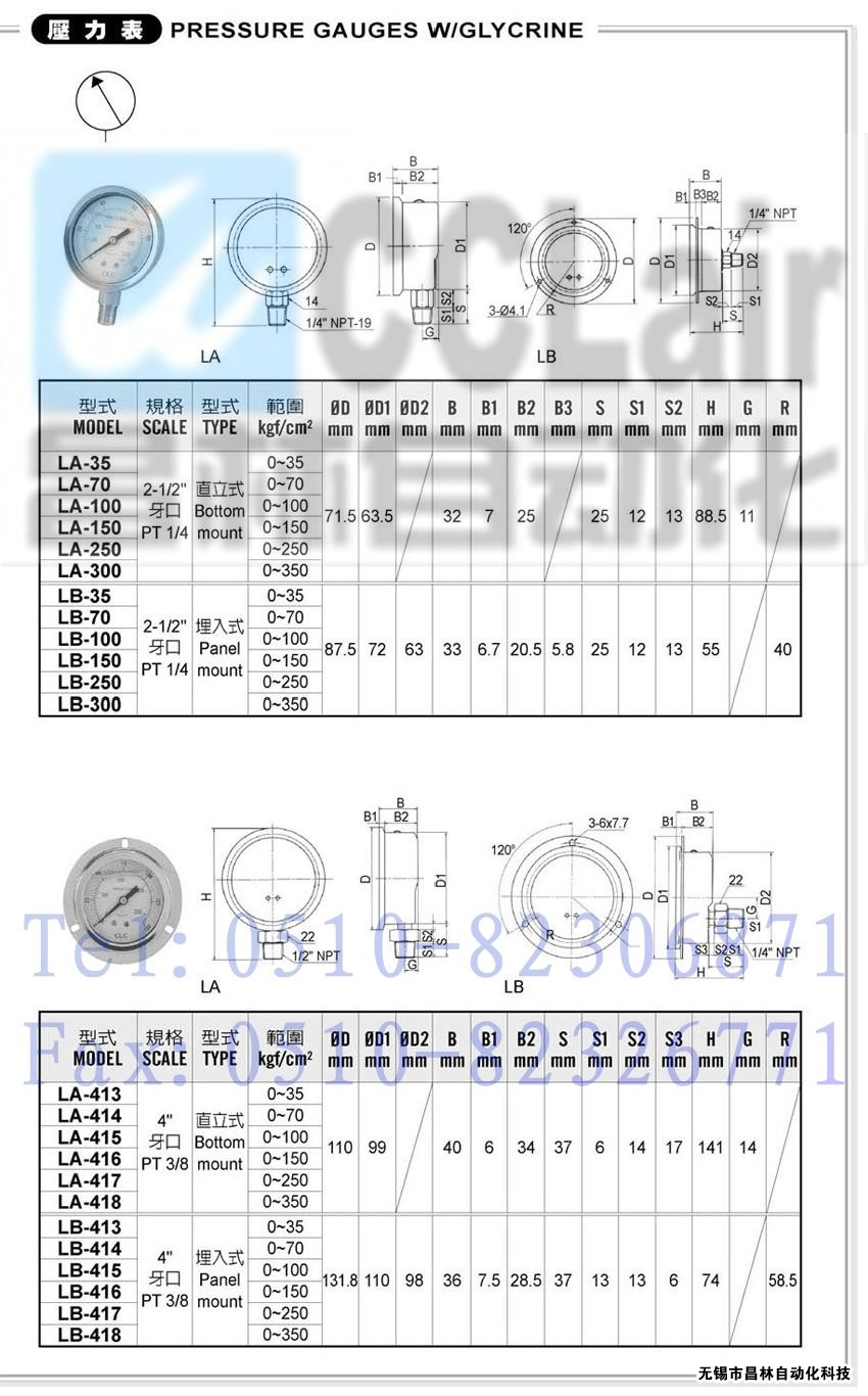 LA-35,LA-70,LA-100,LA-150,LA-250,LA-300壓力計