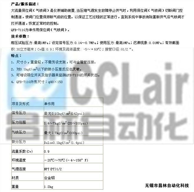 詳細(xì)信息 QFB-711G,大流量保位閥(氣鎖閥)生產(chǎn)廠家,價(jià)格