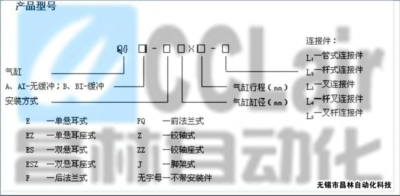 2、 缸徑范圍大,Φ32~Φ400,行程在最大范圍內(nèi)任選,還可商議訂購加長行程氣缸。