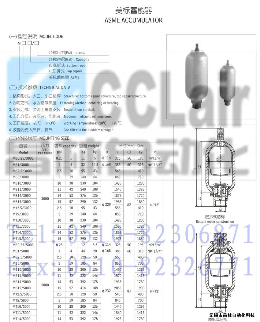 詳細(xì)信息 MB0.25/5000,MB1/5000,MB2.5/5000,MB5/5000,MB10/5000,MB11/5000,MB14/5000,美標(biāo)蓄能器,生產(chǎn)廠家,價格