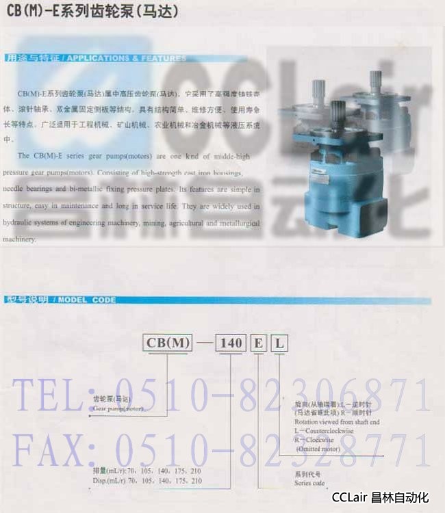 詳細信息 CM-105EL,CM-105ER,CM-140EL,CM-140ER,齒輪泵(馬達) ,