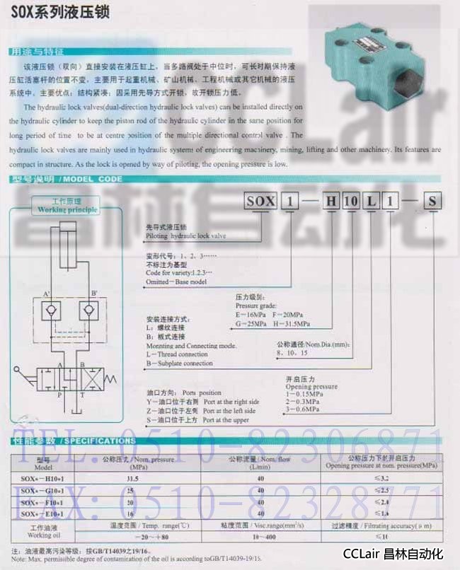 SOX3-G10L3-Z,SOX3-G10L3-S,SOX3-H10L1-Y,SOX3-H10L1-Z,液壓鎖,