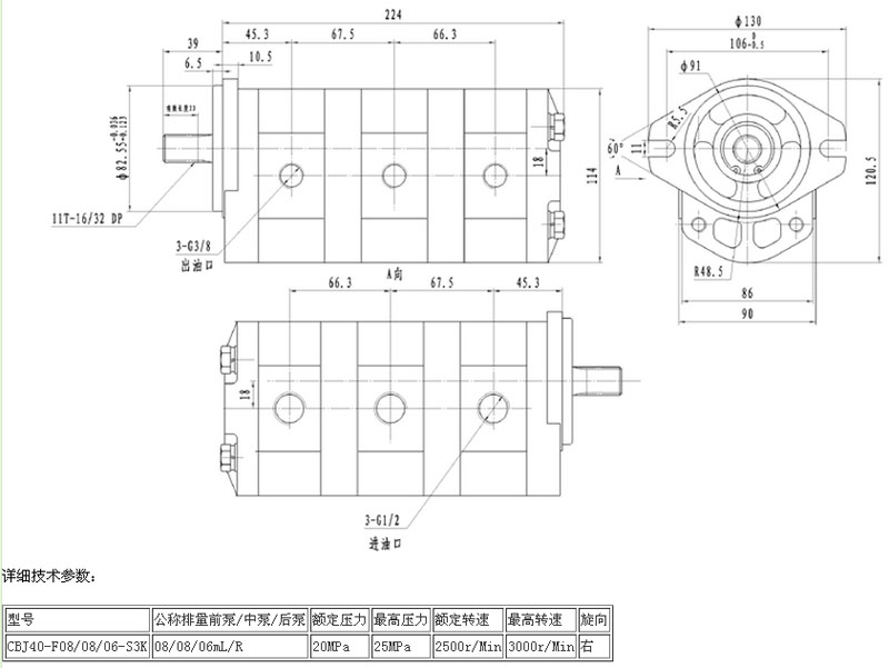 詳細(xì)信息 CBJ40-F08/08/06-S3K,齒輪泵