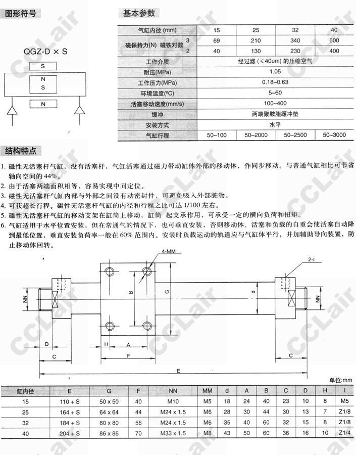 詳細信息 QGZ-15,QGZ-25,QGZ-32,QGZ-40,磁性無活塞桿氣缸