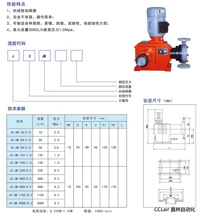 詳細(xì)信息 JX-JM-150/1.0,JX-JM-250/0.5,JX-JM-600/0.5,機(jī)械隔膜計(jì)量泵