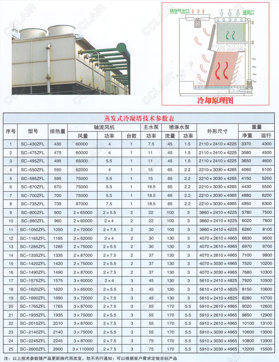 SC-430ZFL,SC-475ZFL,SC-495ZFL,SC-550ZFL,SC-595ZFL,SC-670ZFL,SC-2600ZFL,蒸發(fā)式冷凝塔