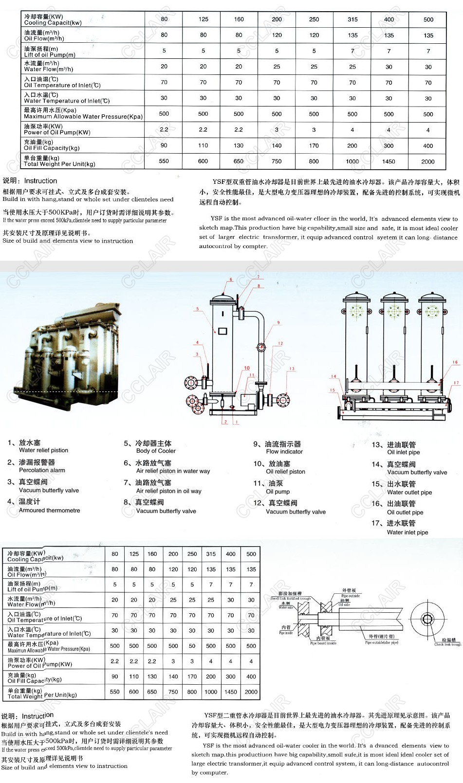 詳細(xì)信息 YSF-80,YSF-125,YSF-160,YSF-200,YSF-250,YSF-315,YSF-400,YSF-500,YSF,雙重管強(qiáng)油循環(huán)水冷卻器