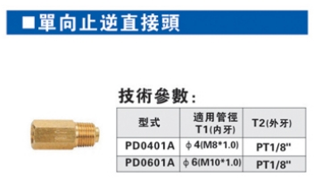 詳細(xì)信息 PD0401A,PD0601A,單向止逆直接頭