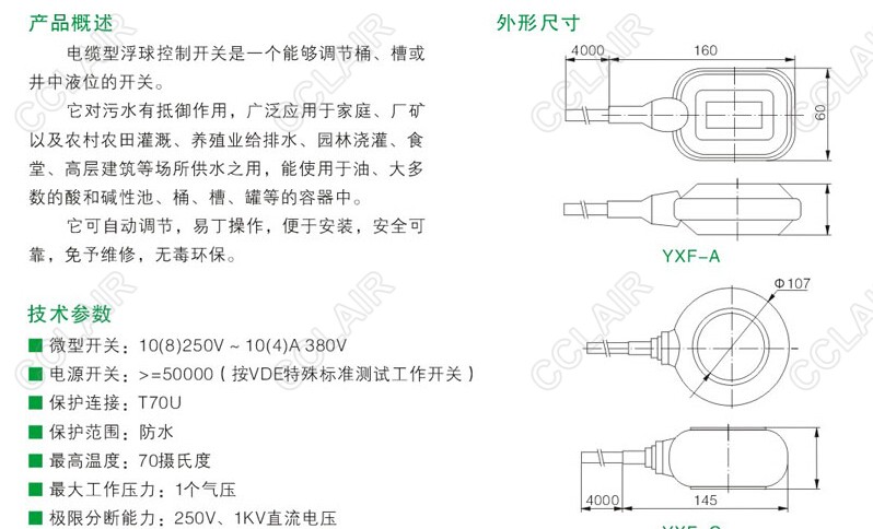 YXF-E,電纜式浮球開(kāi)關(guān)
