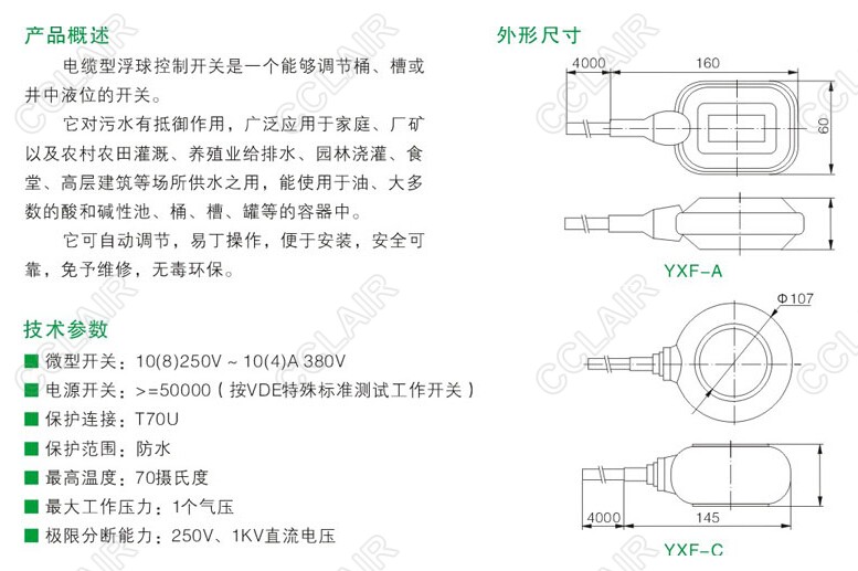 YXF-A,電纜式浮球開(kāi)關(guān)