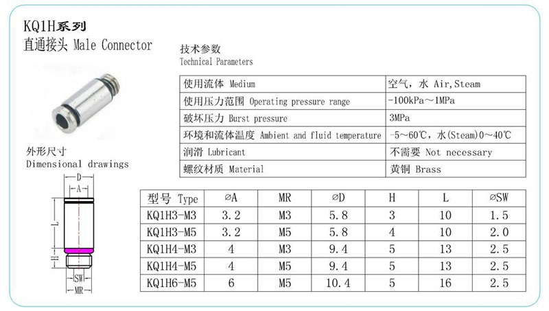 詳細(xì)信息 KQ1H3-M3,KQ1H3-M5,KQ1H4-M3,KQ1H4-M5,KQ1H6-M5,直通接頭