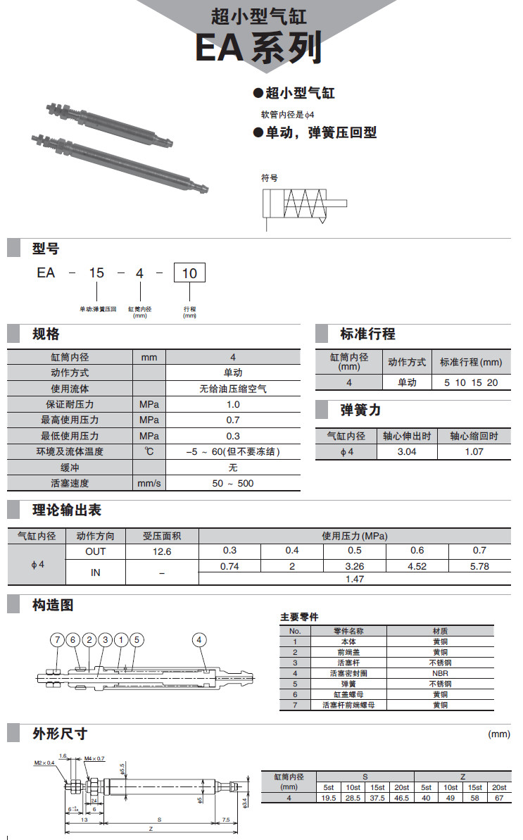 EA-15-4-5,EA-15-4-10,EA-15-4-15,EA-15-4-20,超小型氣缸