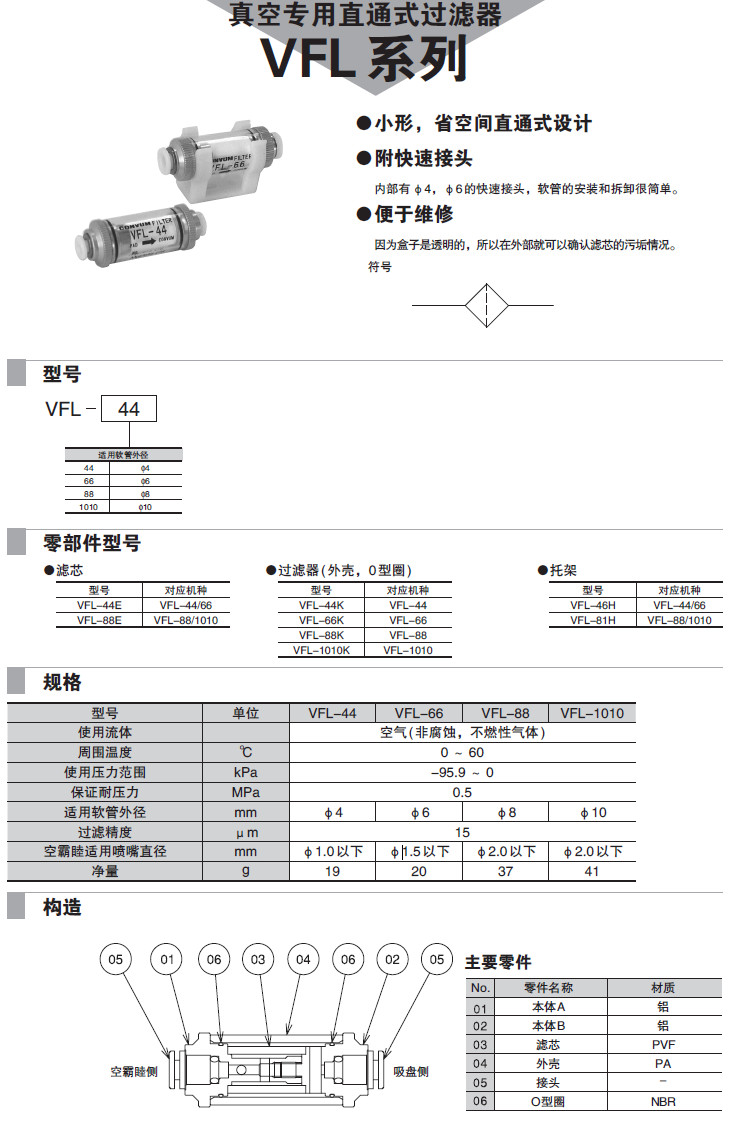 詳細信息 VFL-44K,VFL-66K,VFL-88K,VFL-1010K,過濾器