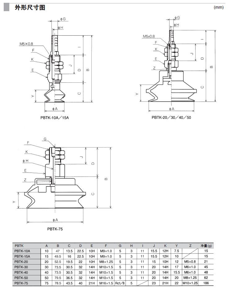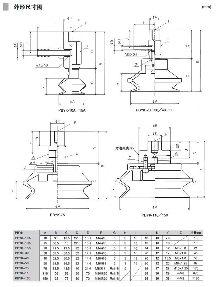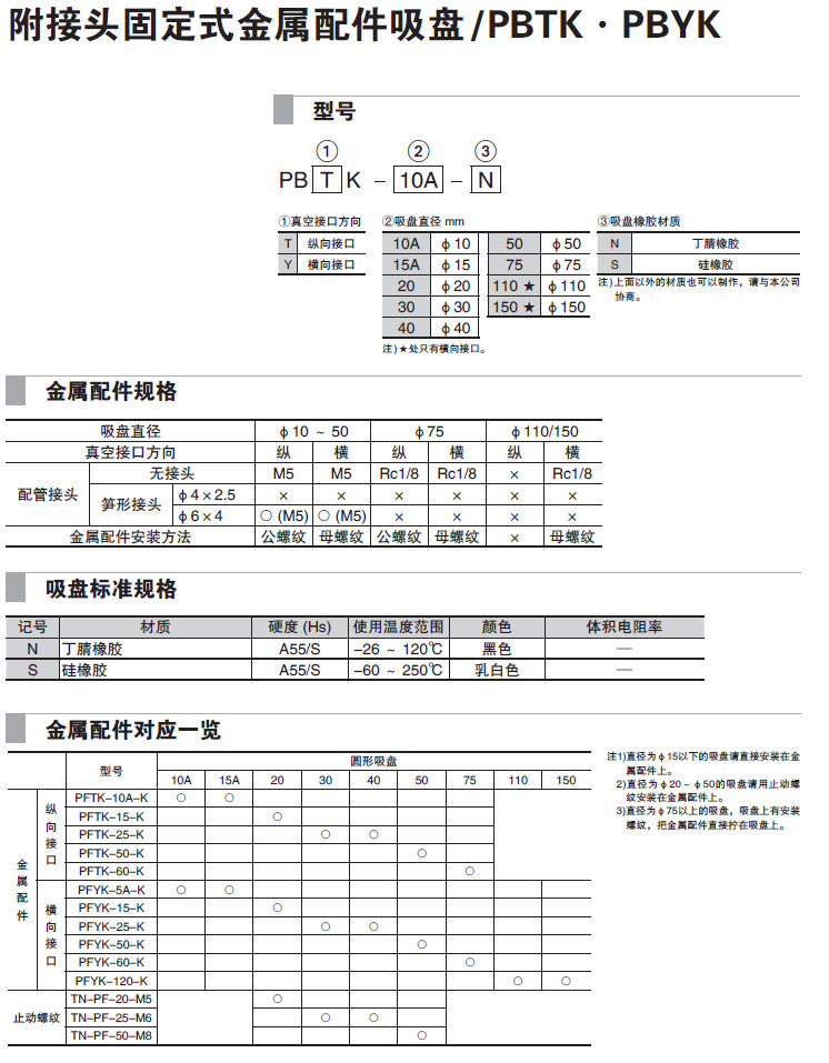 PBTK-10A,PBTK-15A,PBTK-20,PBTK-30,PBYK-40,PBYK-50,PBYK-75,PBYK-110,吸盤