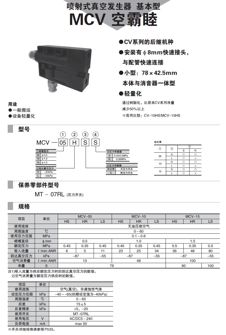 MCV-05HSS,MCV-10HS,MCV-15HSR,MCV-05LR,MCV-10LSS,MCV-15LS,噴射式真空發(fā)生器